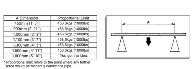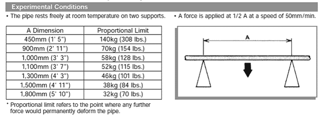 Our first test was to see how our Creform alternative, FlowCell, stacked up against pipe and joint modular flow racks like Creform in load capacity. Creform itself performed the analysis for the Creform structure. The test exerted a force on their standard-duty pipe beams of various lengths positioned on two supports. At 1'5", Creform structures are at their sturdiest, with a load capacity on a beam of that length of 308 pounds. As the width of the beam expands, that capacity drops drastically. At a beamwidth of 5'10", the Creform structure can only support a total weight of 70 pounds without adding additional supports. The results of this test are listed in their product brochure and are pictured below.